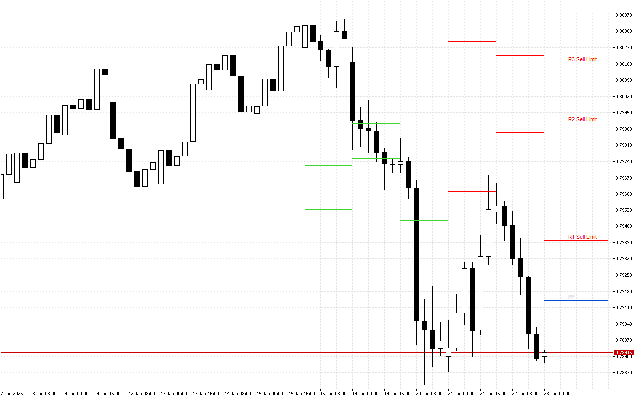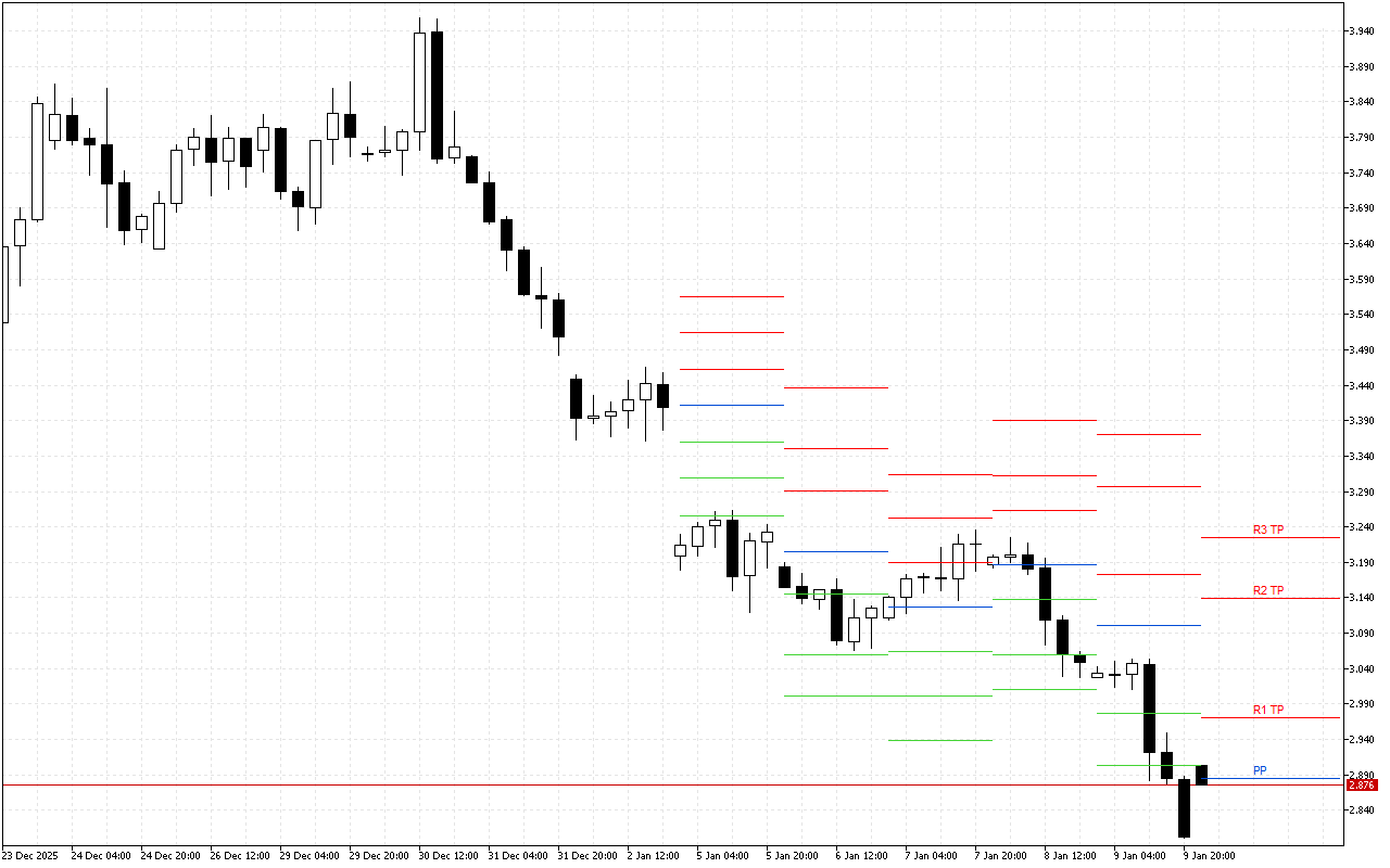 Signalerne for at komme ind på markedet kan findes både i nærheden af PP-niveauet, og når der dannes en dybere tilbagerulning nær S1-, S2-, S3-niveauerne. Fortjenesten er fastsat, når modstandsniveauerne for R1, R2 og R3 er nået.