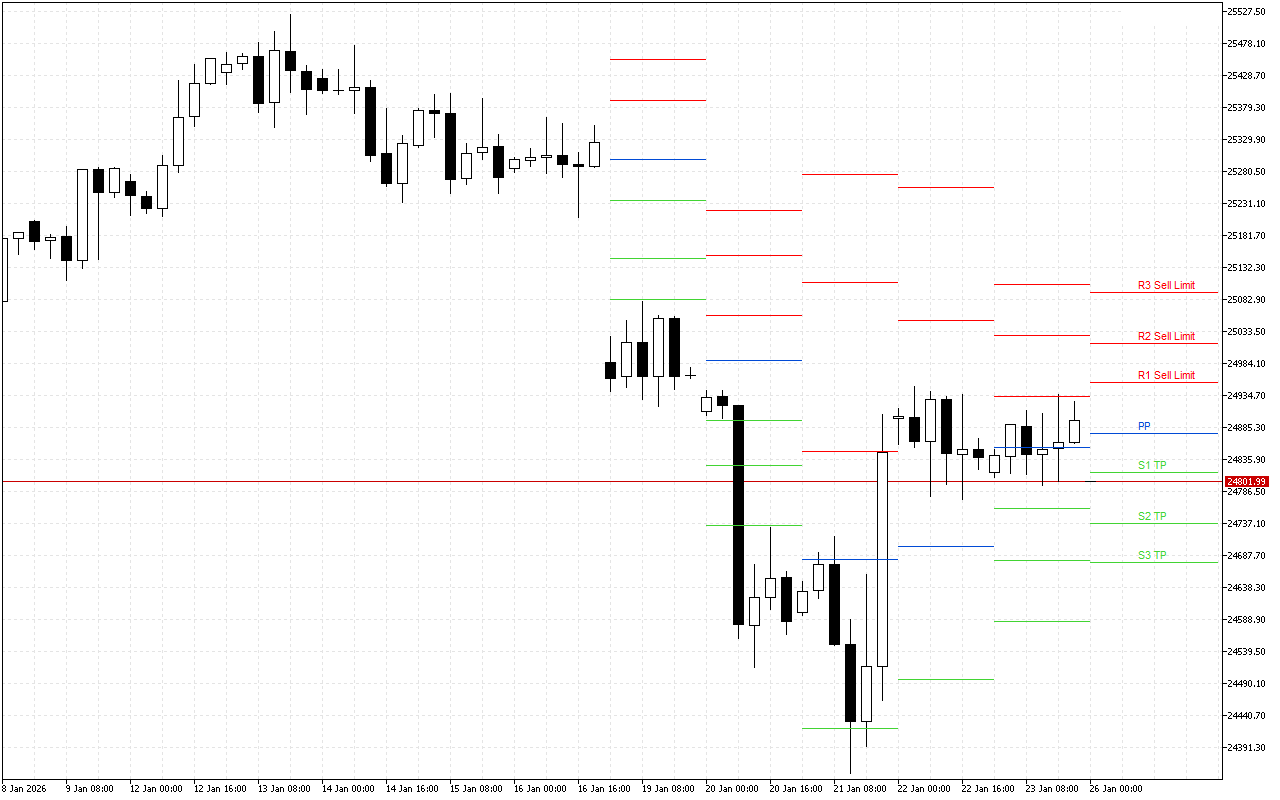 Intradag-supportniveauerne er S1, S2 og S3.