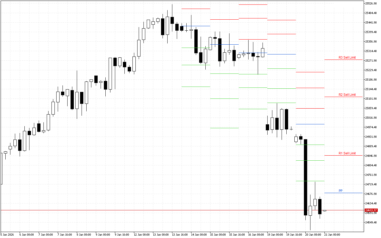 DAX 40 H4: Pivot Points-Niveaus für die amerikanische Sitzung am 27.2.2026
