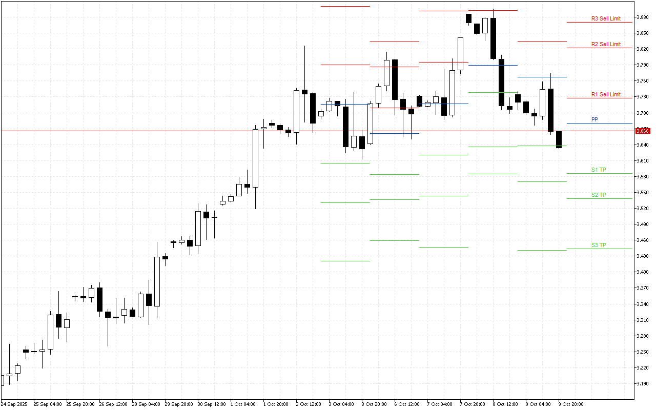 Derzeit liegt der Wert von Pivot Points bei etwa 3.597. Eine Markteröffnung oberhalb dieses Niveaus deutet auf eine höhere Wahrscheinlichkeit einer Aufwärtsbewegung innerhalb des Tages hin.