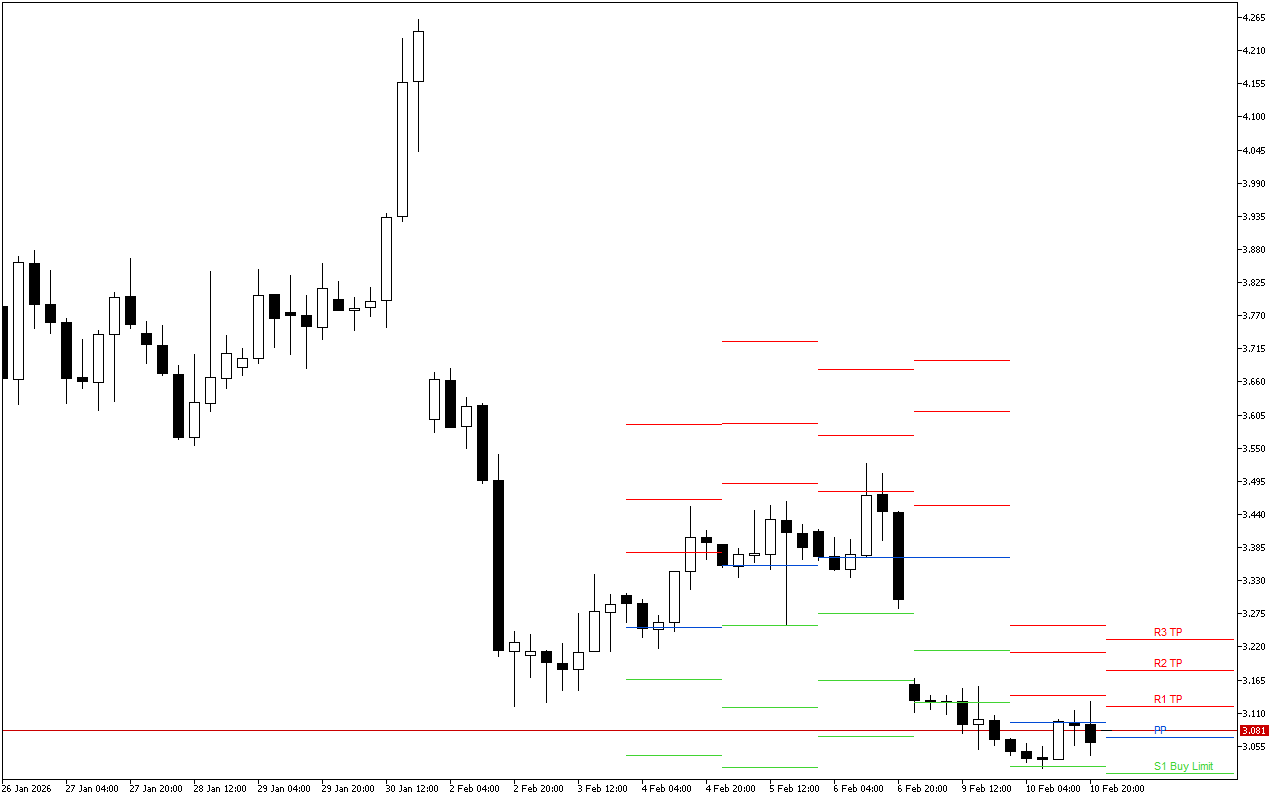 Der Markt kann sowohl vom Niveau PP aus betreten werden als auch, wenn ein Preis auf das Niveau R1, R2 oder R3 zurückfällt. Der Gewinn ist festgesetzt, wenn der Preis die Niveaus S1, S2 oder S3 erreicht.
