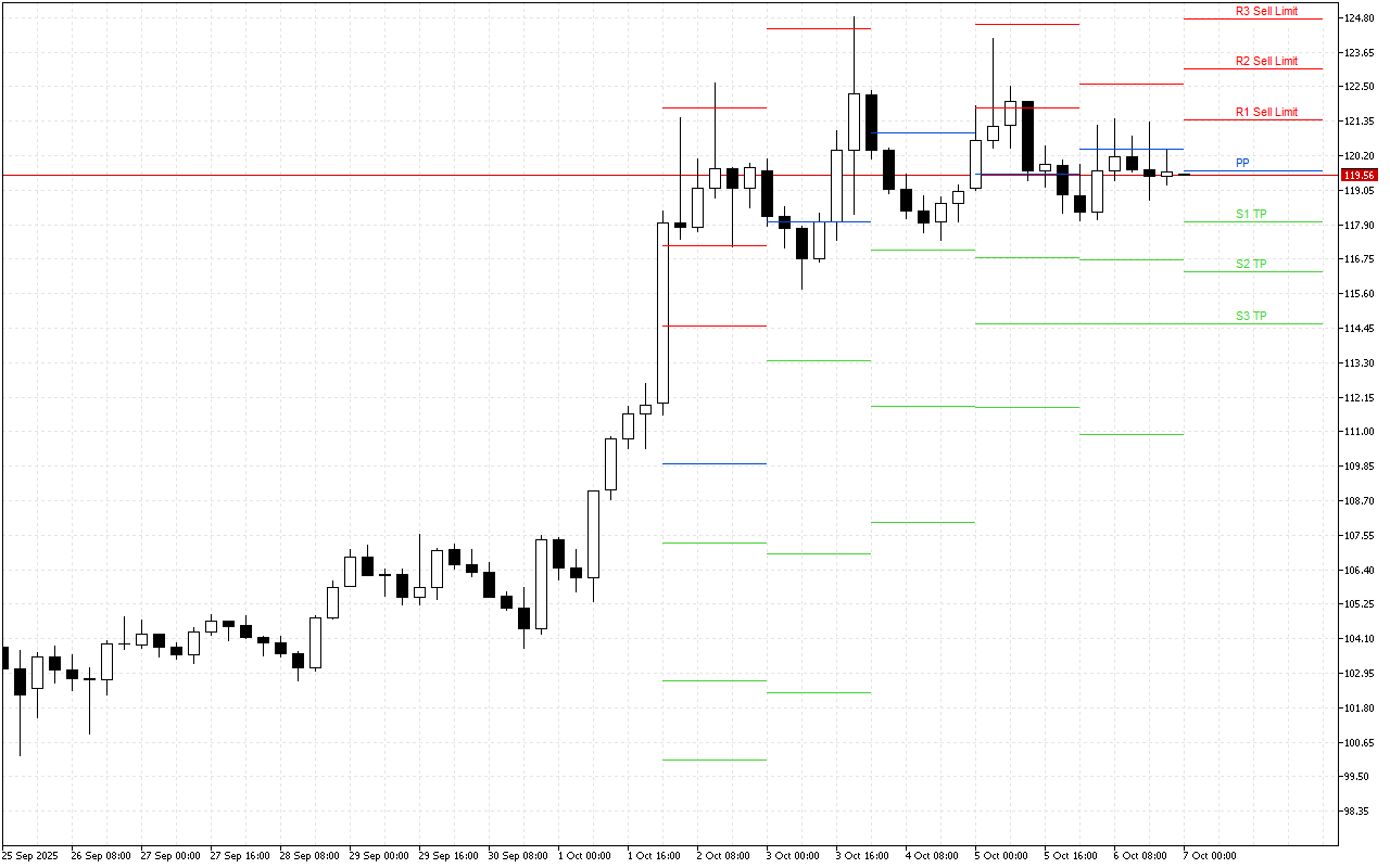 Μπορείτε να εισέλθετε στην αγορά τόσο από το επίπεδο PP όσο και όταν μια τιμή επιστρέψει στο R1, στο R2, στο R3. Το κέρδος σταθεροποιείται όταν η τιμή φτάσει στα επίπεδα S1, S2, S3.