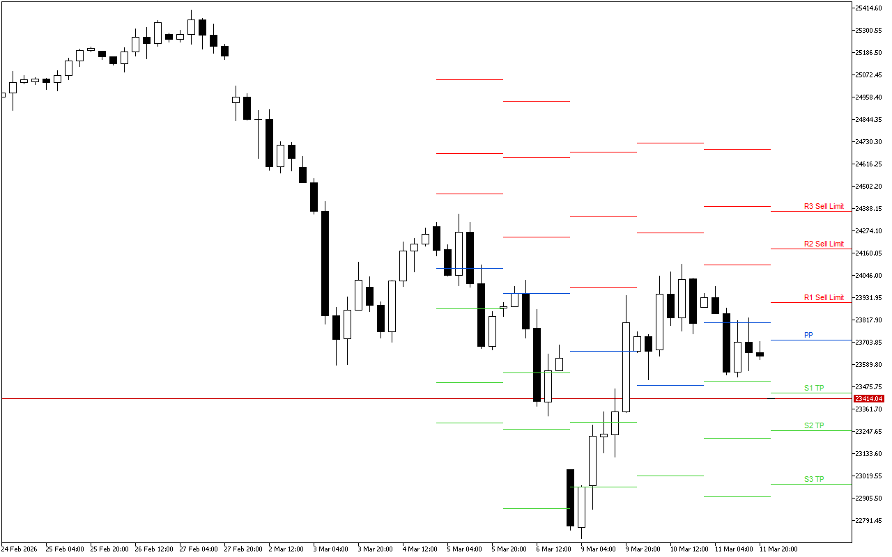 DAX 40 H4: Pivot Points-nivåene for den amerikanske økten 12.3.2026