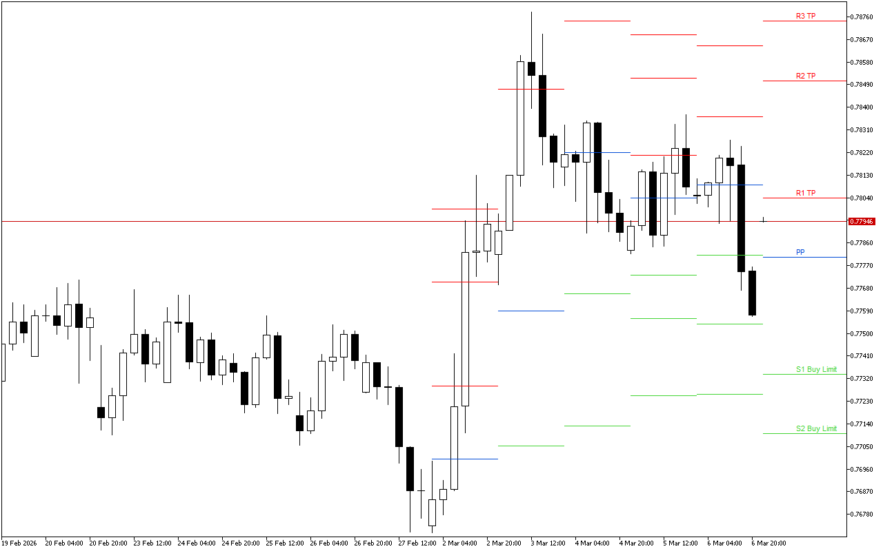 Gjeldende Pivot Points-nivå er på 0.78376. Åpningen av markedet over PP-nivået indikerer overvekt av optimistisk sentiment, så intradag er det verdt å søke etter inngangspunkter til lange posisjoner.