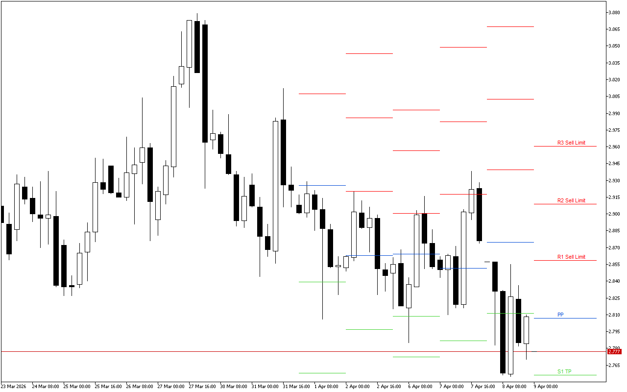 Signalene for å komme inn på markedet kan finnes både nær PP-nivået og når det dannes en dypere tilbakerulling nær S1-, S2-, S3-nivåene. Fortjenesten fastsettes når motstandsnivåene R1, R2 og R3 er nådd.