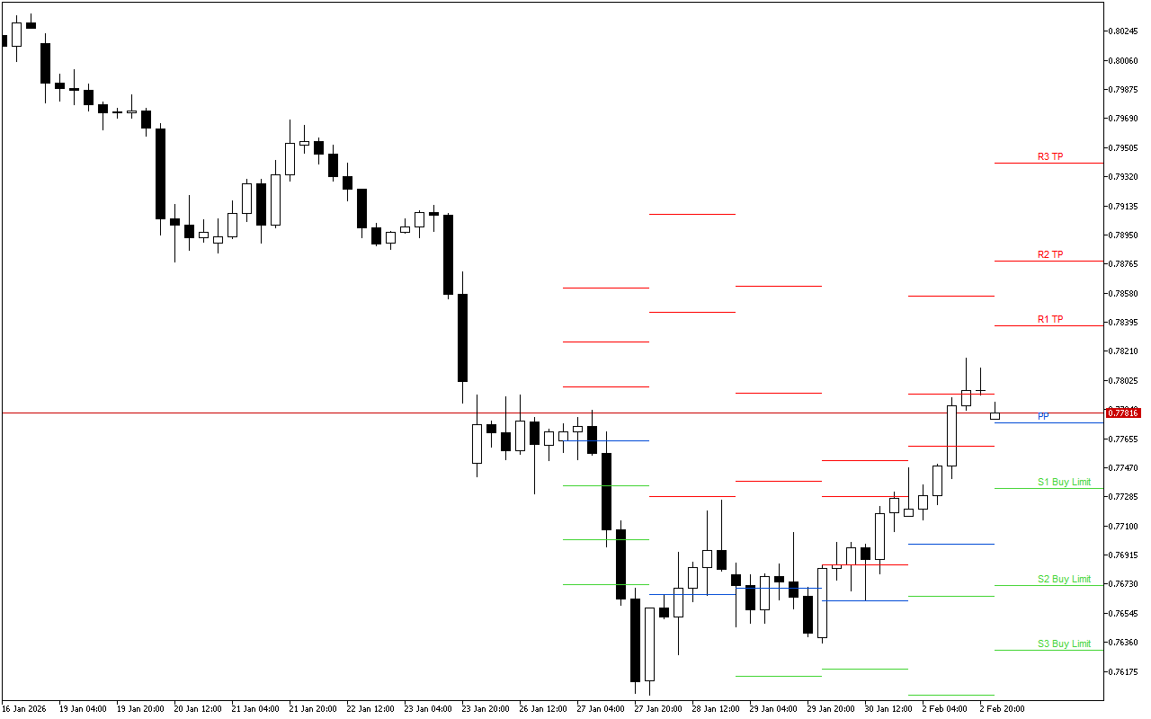 Sinais para entrar no mercado podem ser encontrados perto do nível PP ou quando ocorre um recuo maior nos níveis S1, S2, S3. O lucro é fixado quando os níveis de resistência R1, R2 e R3 são atingidos.