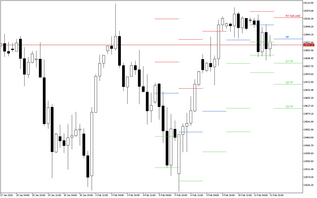 O nível atual de Pivot Points é 25258.10. Com a abertura do mercado acima desse nível, é mais provável que o sentimento positivo prevaleça. Portanto, durante o dia, dá-se prioridade à abertura de posições compradas.