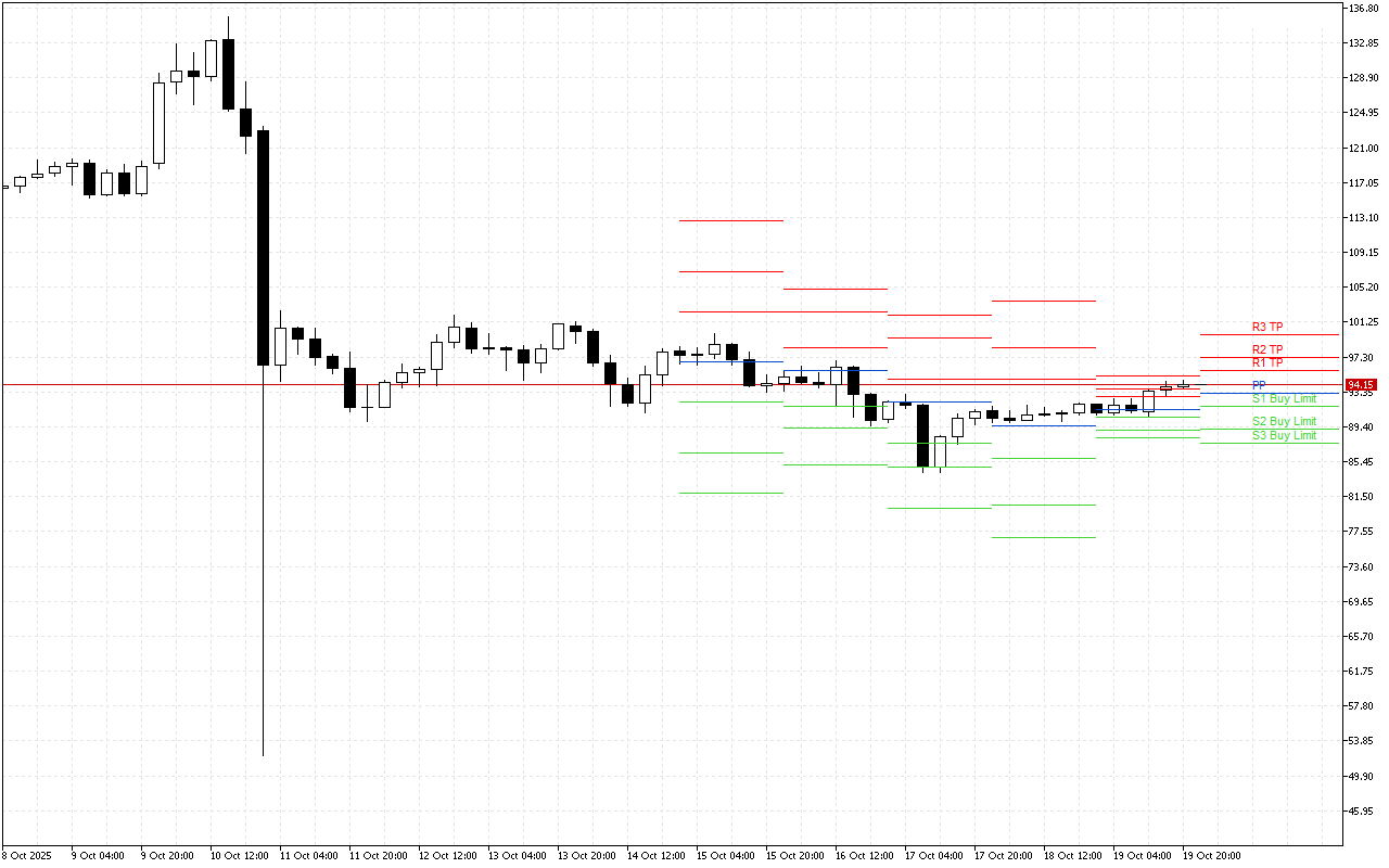 ระดับในตอนนี้ของ Pivot Points ถูกกำหนดไว้ที่ 96.46 การที่ตลาดเปิดเหนือระดับนี้ บ่งชี้ได้ถึงความแพร่หลายของการมองโลกในแง่ดีในหมู่เทรดเดอร์ และทำให้สถานะซื้อน่าสนใจยิ่งขึ้นตลอดทั้งวัน