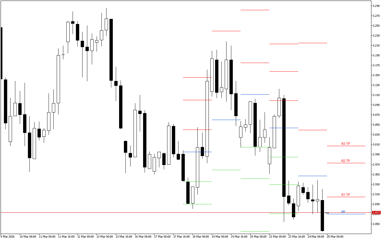 ระดับในตอนนี้ของ Pivot Points ถูกกำหนดไว้ที่ 2.870 การที่ตลาดเปิดเหนือระดับนี้ บ่งชี้ได้ถึงความแพร่หลายของการมองโลกในแง่ดีในหมู่เทรดเดอร์ และทำให้สถานะซื้อน่าสนใจยิ่งขึ้นตลอดทั้งวัน