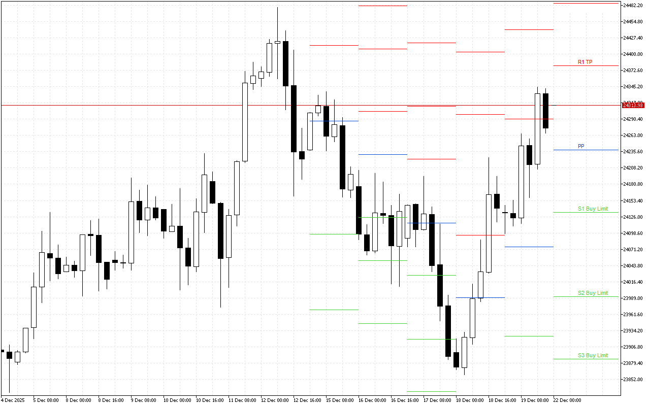 สามารถเข้าสู่ตลาดได้ทั้งจากระดับ PP และเมื่อราคาลดลงไปที่ R1, R2, R3 กำไรจะคงที่เมื่อราคาไปถึงระดับ S1, S2, S3