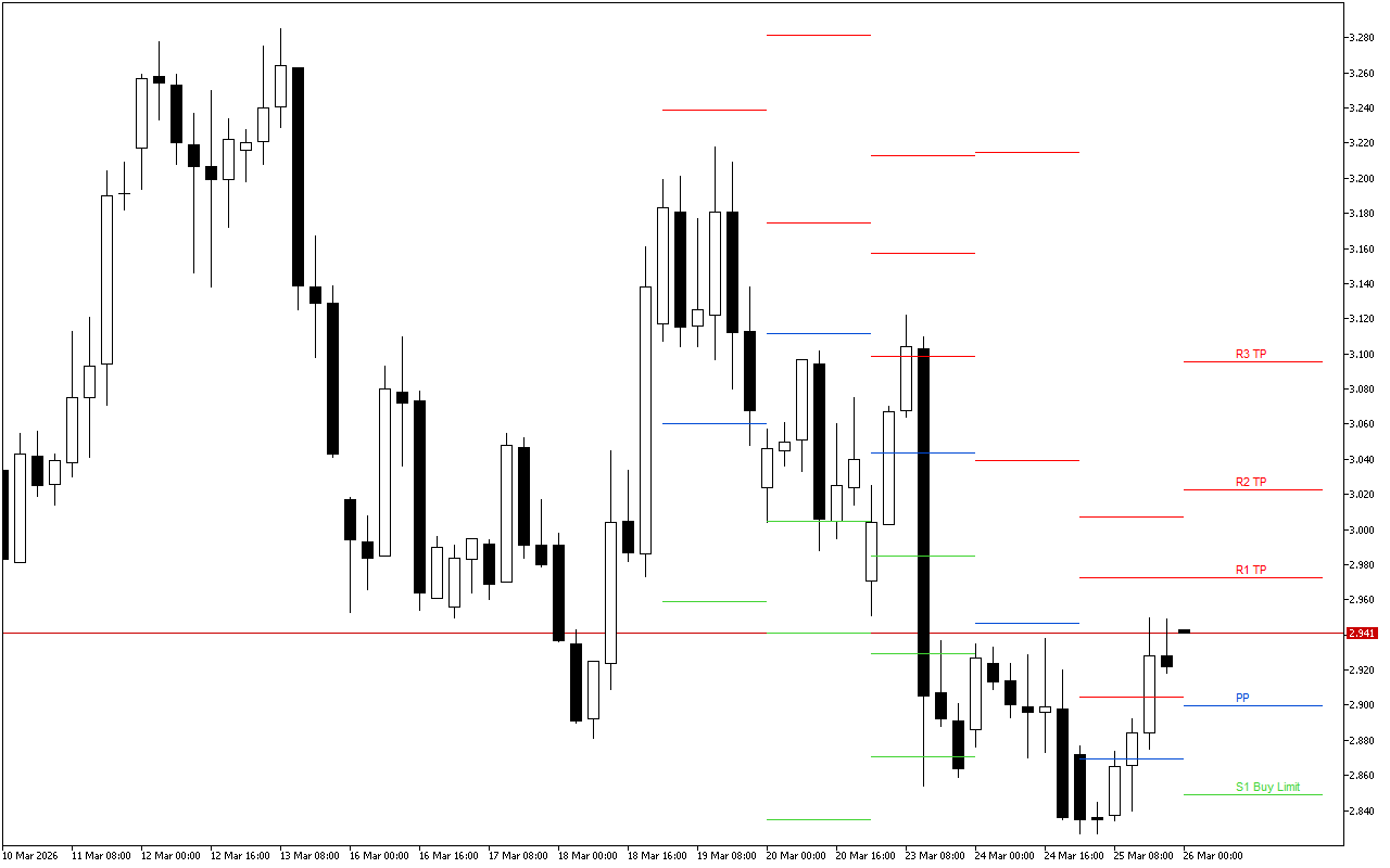 Շուկա մուտք գործելու ազդանշանները կարելի է գտնել և՛ PP մակարդակի մոտ, և՛ երբ ավելի խորը հետընթաց է ձևավորվում S1, S2, S3 մակարդակների մոտ: Շահույթը ամրագրվում է, երբ հասնում են դիմադրության R1, R2 և R3 մակարդակները: